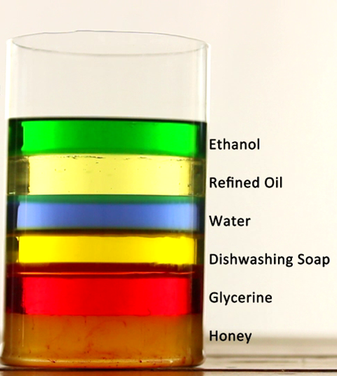 We took a two small glass jars. To the first, we added water followed by oil. They clearly formed two separate layers with oil on top.