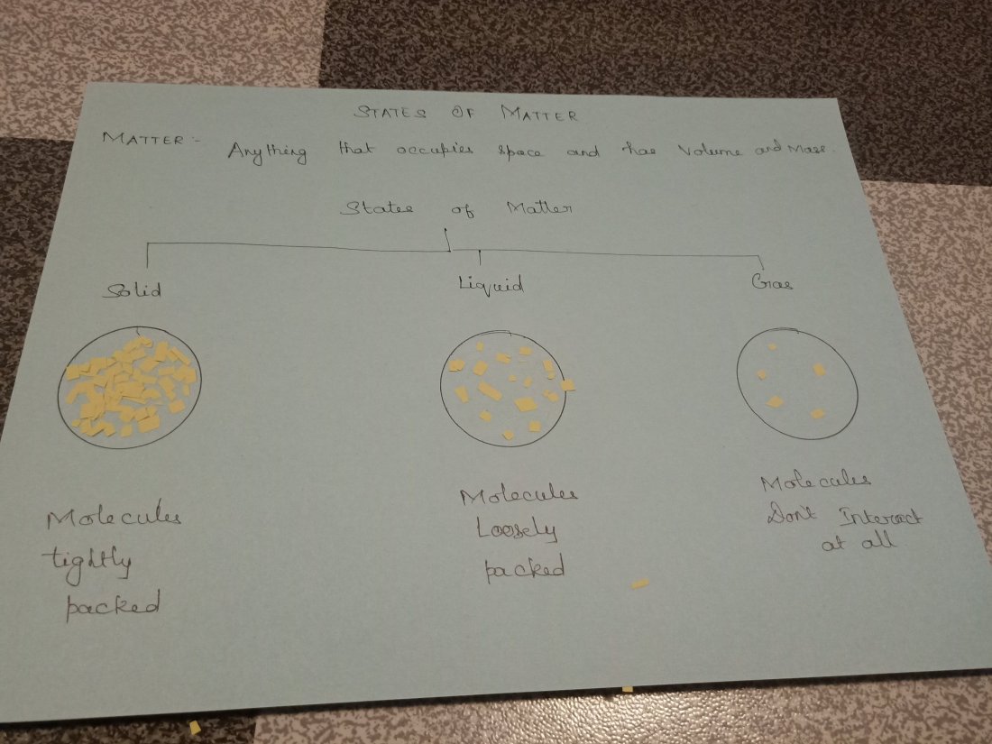 Molecules are packed tightly in solids and are strongly bonded giving rise to rigidity in solids . So kids pasted those tiny paper bits close to each other.
